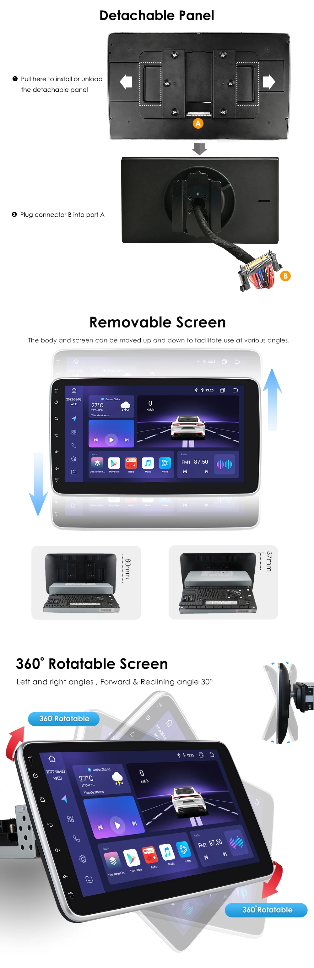 Radio con GPS para coche, reproductor Multimedia con Android 12, AI, CarPlay, estéreo, vídeo, Navi, Universal, 360 grados, pantalla giratoria, RDS, 1DIN, USB – AliExpress – Enviado desde : Polonia – Color : S1 AHD2